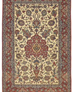 19世紀の末、シュレシは運良くジリ・スルタン・マスード・ミールザ王の援助を受けて絨毯工房をイスファハンに構えるとロシアとの貿易商人の依頼を受けてロシア皇帝ニコライ2世へ絨毯を納める事となります。その後、イスファハン絨毯の有り方を指し示す様な自然染料・経糸シルクにコルクウールパイルの高密度絨毯を1930年に没するまで製作し息子に引き継ぎますが、工房は1961年まで続きました。特に天才デザイナーミルザ・アーガ・エマミーとの共同制作<Emami × Shureshi>の名で知られる絨毯は、高品質、卓越したデザインで高く評価されています。アブドラヒム・シュレシの存在がイスファハンがその後セイラフィアンやハギギと言った名工房を生む礎になったと言われます。