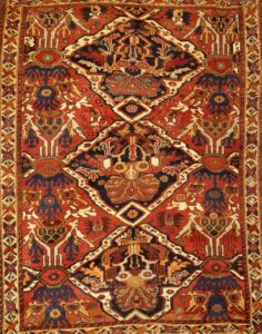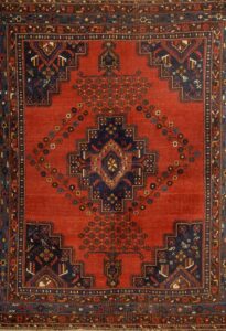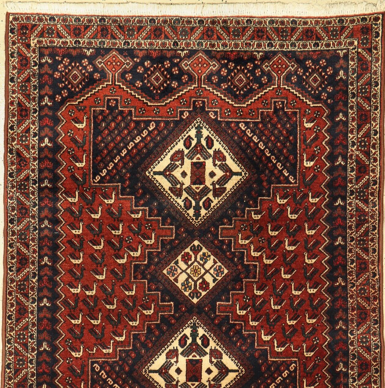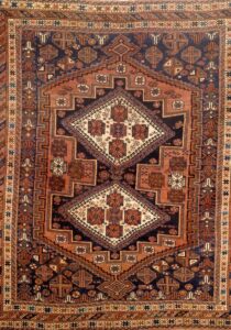アフシャルの絨毯は他の部族カシュガイ・バフティアリ・ロリ族などとの共通点も多くありますがクルディスタン州のビジャーやイランの南東ケルマンなどに触発されたデザインの絨毯など多様性を持っています。近年はユネスコ登録されたシールジャンの飾りキリムも有名です。