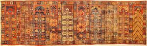 Early Khotan Rug, East Turkestan, late 18th wool on cotton 368 x 114  Khotan in so-called Saph prayer-type