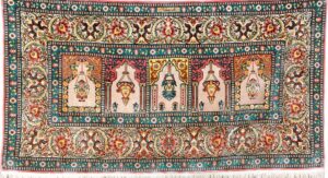 *メタルスレッド(金属糸)を使って絨毯に豪華さを加えるのはオスマンペルシャ・ムガールなどの古い技法ですが、宮廷絨毯や祈祷用絨毯にしばしば使われました。