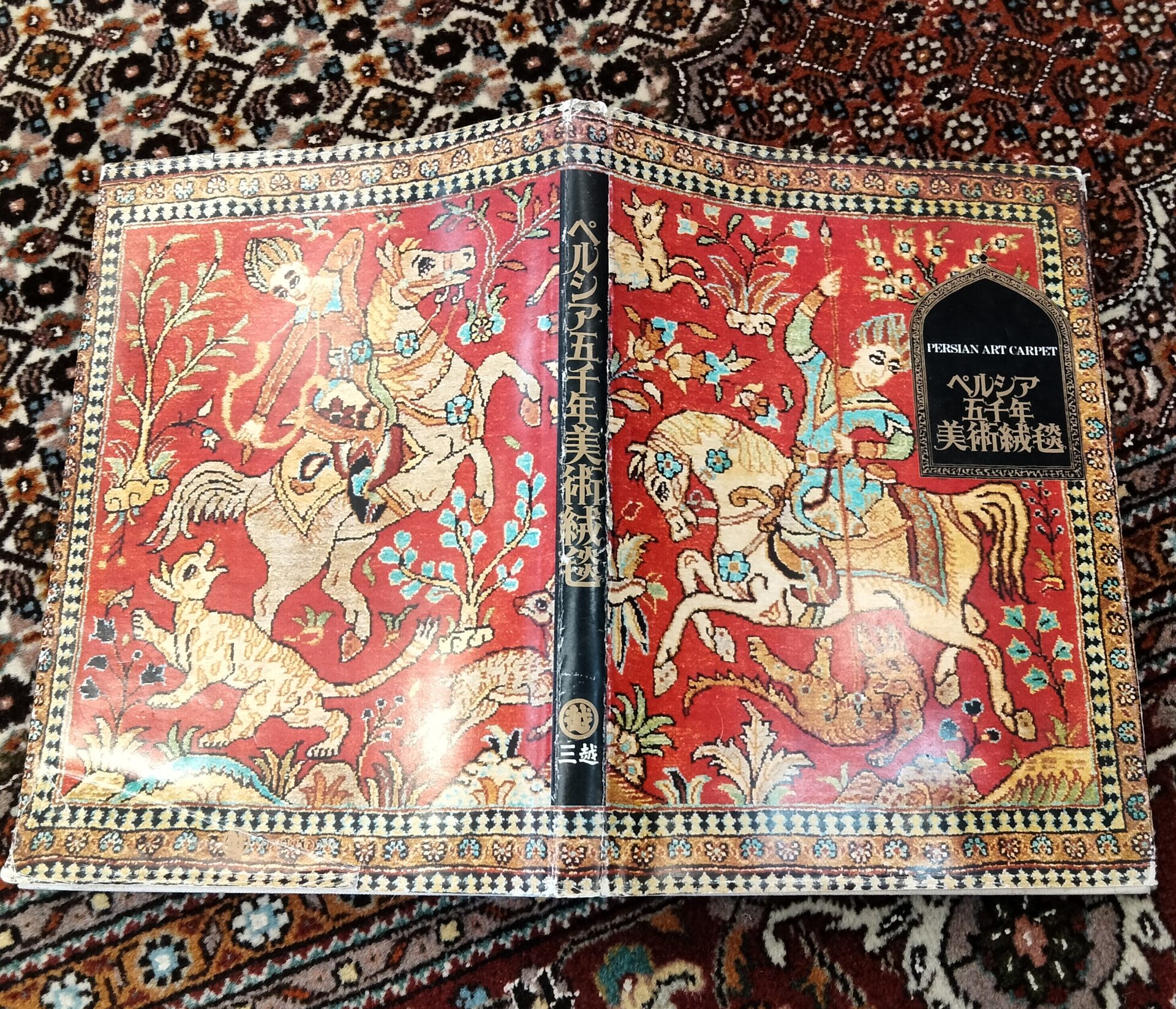 1976年と言いますとまだペルシャ絨毯が日本であまり認知・使用されていない時代で百貨店の王様が絨毯の啓蒙の為に発刊した貴重な本かと思います。既にこの時代ダイエーやイトーヨーカドーなどスーパーストアが飛ぶ鳥を落とす勢いで台頭していましたが、百貨店は”これからは商品では無く文化を売る時代”と言い放ちまだまだ小売業界で格段の地位を保っていた頃です。三越百貨店自体は此の後、<古代ペルシャ秘宝展の偽物騒ぎ>や<三越の女帝事件>などで「何故だ!」で有名な社長解任劇に至り信用がぐらついてしまいますが、ペルシャ絨毯はその後バブルに向かって倍々ゲームの様に好調な売れ行きを記録します。三越百貨店の思惑が見事に当たったという事ですね。その後ペルシャ絨毯の販売は全国の百貨店に波及し稼ぎ頭の商品へと成長します。