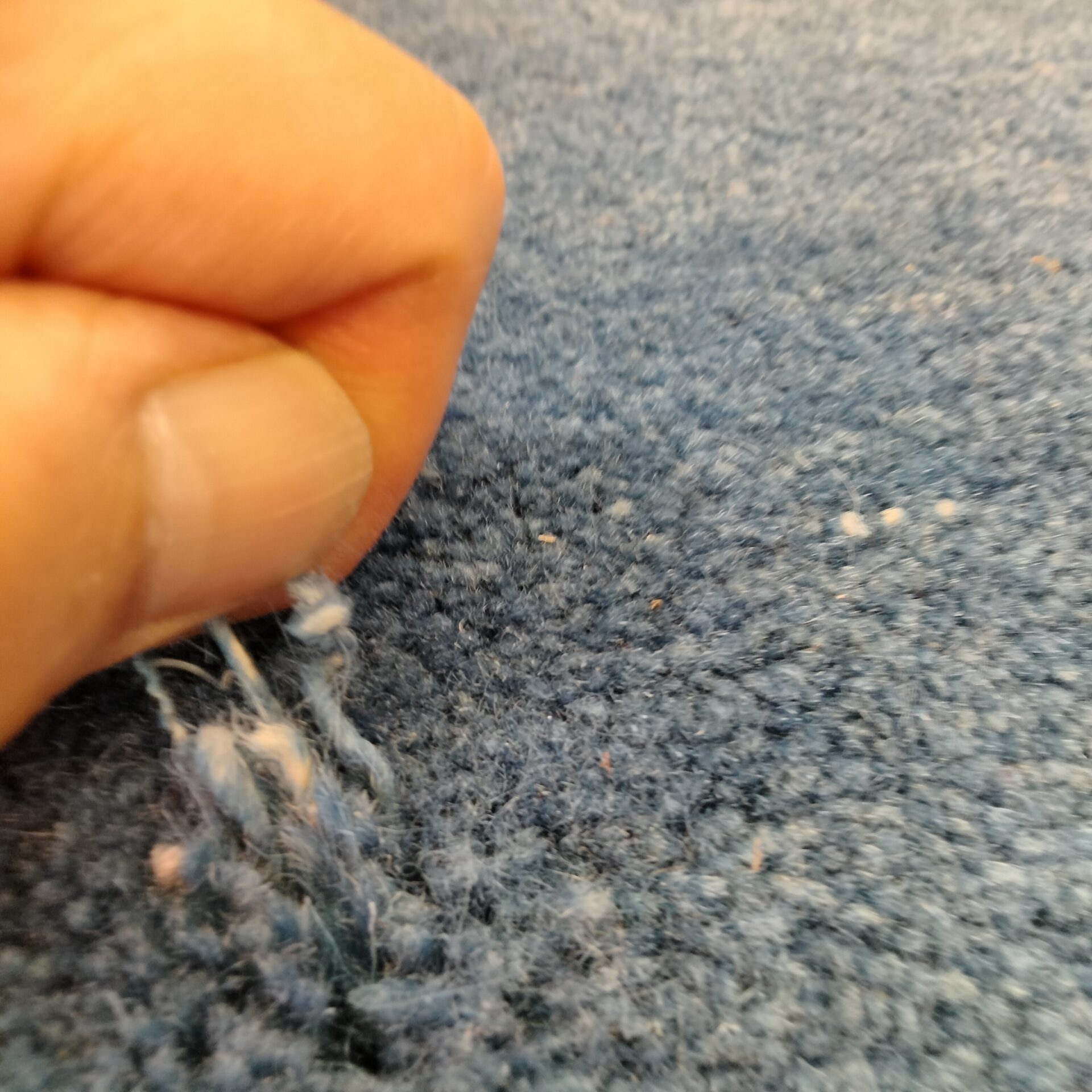 上記の様な素手によるチェックを行うとパイルのくるくるダマ以外にも木屑の様な物や編み込まれてしまった不要物を見つける事も有ります。